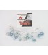 Holeshot plastfästesatser är noggrant undersökta och utformade för att innehålla alla nödvändiga fästelement, axelbultar och aluminiumhylsor som behövs för att byta ut gaffelskydd, skärmar, nummerplåtar, kylarkåpor och sadlar.